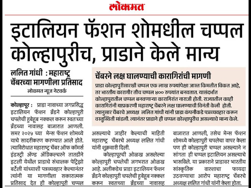 While Prada was selling the Kolhapuri-style sandals at over ₹1,00,000, local artisans in Kolhapur craft the same footwear for as little as ₹400. Disheartened by this disparity and lack of recognition, several local artisans appealed to the Maharashtra Chamber to take action. In defense of the artisans’ legacy and the cultural significance of Kolhapuri chappals, Gandhi reached out to Prada to clarify the facts.