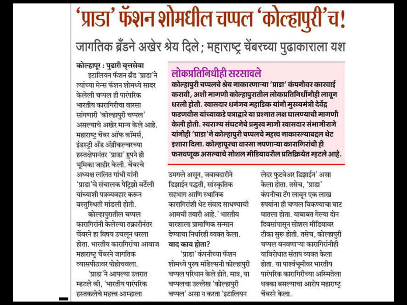 Kolhapur – Italian luxury fashion brand Prada recently showcased sandals in their men’s fashion show that closely resembled the traditional Kolhapuri chappal, marketing them under their own label. In response, the Maharashtra Chamber of Commerce, Industry and Agriculture (MACCIA) swiftly wrote to Patrizio Bertelli, the director of Prada, raising concerns over the unauthorized use of India’s cultural heritage. Prada has now officially acknowledged that the sandals presented were indeed Kolhapuri chappals. This development was confirmed by MACCIA President Lalit Gandhi on Friday.Lorenzo Bertelli, Head of Corporate Social Responsibility at Prada Group, responded in writing to MACCIA. He acknowledged the global recognition of Kolhapuri chappals, which are symbolic of Kolhapur’s identity and Maharashtra’s cultural pride. The brand admitted to showcasing Kolhapuri-style sandals in their show, which were initially portrayed as Italian, prompting concerns of cultural misappropriation. Lalit Gandhi criticized Prada for commercially exploiting India’s traditional crafts without giving due credit.